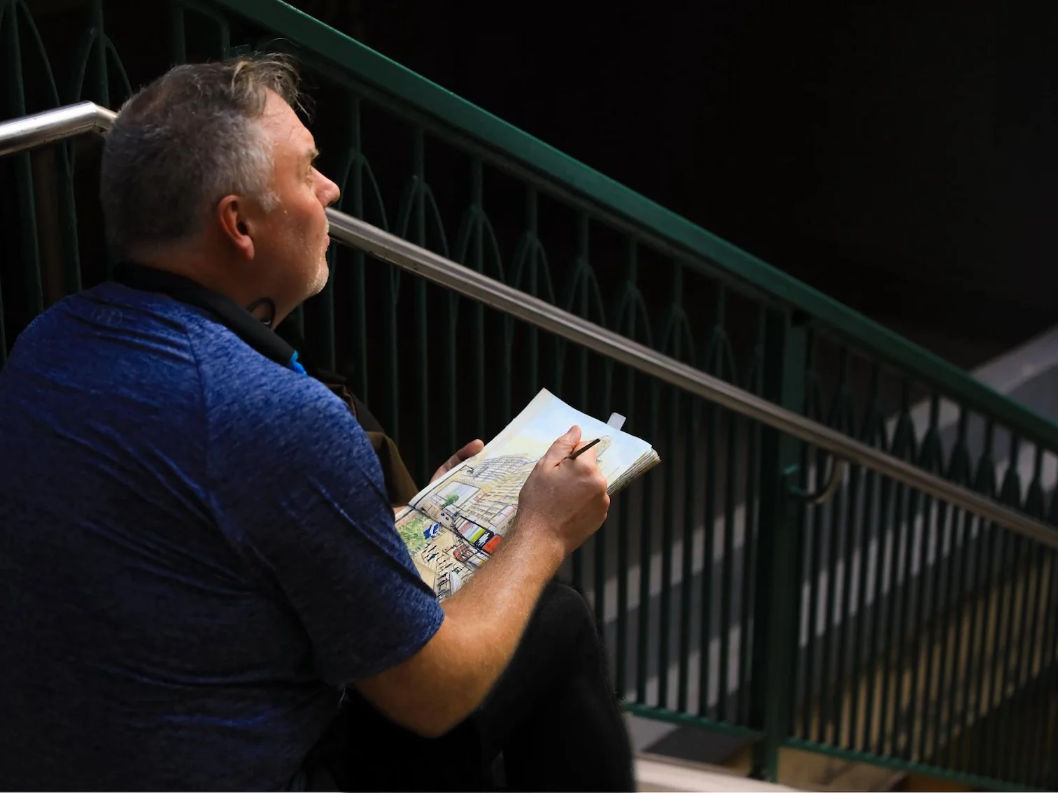 That doesn’t do much for Crosbie and artists like him in the moment, but it’s better than zero exposure. Crosbie relocated to Hong Kong in 1996 to work in industrial design, and pivoted to art full time during – three guesses – the pandemic; the minutiae of Hong Kong life his subject (more on Instagram). At a time when we were pulling farther and farther away from each other, Crosbie opted to connect, or reconnect as it were, with the people and places around him. The solitary nature of his work helped: he was parking his ass on a stool in the middle of the city and just… sketching what he saw. The exhibition collects 50 watercolour, ink, pastel or acrylic pieces alongside a video display, and a few days before opening he’s mulling an installation component. “I just need to figure out how to do it.”