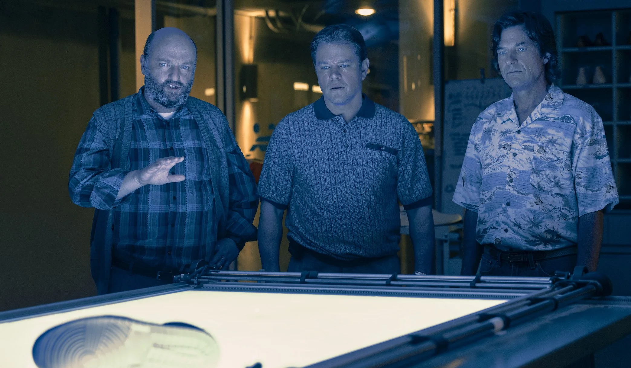 Heaving with ’80s needle drops and teeming with visual references to neon, acid wash and those Adidas track suits that were just about the most unflattering fuckin’ things ever produced and possibly a crime against humanity, Air starts in 1984, with Nike’s basketball division marketshare lagging behind rivals Adidas and Converse. Yes, Air would have us believe Nike is an underdog. Anyway, Vaccaro sits in on a meeting where management is trying to choose an NBA rookie – the draft that year included Akeem Olajuwon, John Stockton and Charles Barkley – or three, to spend its meagre budget on. Marketing executive Rob Strasser (Jason Bateman) likes Stockton, some other dude likes Melvin Turpin (who?), but Vaccaro insists they put all their eggs in the Jordan basket – even though Jordan, his mother and his influential agent, David Falk (Chris Messina, Argo) have made it clear they’re not interested in Nike. Let the games begin.