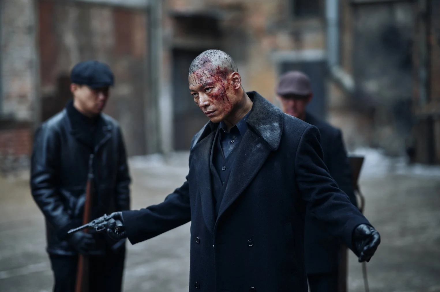 Harbin | 하얼빈 is one of those historical thrillers whose aesthetic instantly identifies the period of history it unfolds in, and the specific Resistance-Occupier set at the centre of th story. Somewhere along the way, the code for these stories has become a language found almost entirely in heavy woollen coats, low-slung fedoras, dimly lit smoky rooms and swift, hushed shuffling through dark alleys and/or steam train carriages. A real stylist will throw in a light dusting of snow as a chic visual accent. The images lend a romance to the storytelling about a time that was actually anything but; it’s just hard for movies to make the brilliant sneakiness of resisters look anything other than flawless. This language isn’t new, but South Korean filmmakers have really perfected it recently. Think of Choi Dong-hoon’s Assassination, Kim Jee-woon’s The Age of Shadows – and Zhang Yimou’s Cliff Walkers, using the same code for a similar Chinese story a couple of decades later.