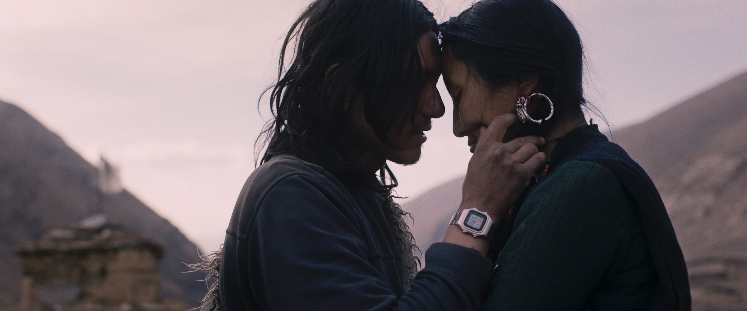 In a nutshell, Shambhala | ༄༅ཤམ་བྷ་ལ། tells the rambling, meditative story of Pema (Thinley Lhamo), a young Nepalese woman about to get married. Fussing around with her parents in her polyandrous Himalyan village she’s getting ready for those nuptials, which her mother distinctly advises she never allow her identity to be subsumed to. Her father remarks that she’ll be a great wife precisely because she’s not afraid to go her own way sometimes. Everyone’s happy, including her new husbands and brothers: Tashi (Tenzin Dalha), a dashing trader; Karma (Sonam Topden), a devout Buddhist training to enter a monastery; and teenaged Dawa (Karma Wangyal Gurung), for whom Pema feels less wifely and more maternal. All is well until Dawa starts falling behind at school and Pema privately turns to his teacher Ram (Karma Shakya) for help, Tashi vanishes during his weeks-long trek to Lhasa and Pema later turns up pregnant. The neighbours start shit-talking her, so Pema decides she’s going to head out to find Tashi and defend herself. She loads up her trusty steed, stops at the temple to pick up Karma for support and begins her mission. Along the way Karma and Pema start to form a real bond, one that neither expected would have a chance to form, but the relationship is cut short when Karma’s monastery Rinpoche (Loten Namling) suddenly dies, and he leaves her to finish the search for Tashi alone.