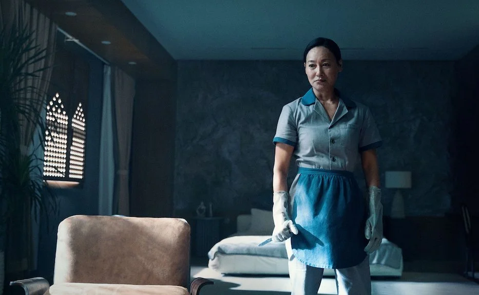 I can’t even remember the faux location this time, though the local PD seems comprised of constables that are Filipino, Indonesian, Indian, Malaysian and Chinese (does Chen really think Asia is a monolith?). They’re currently investigating the locked-room murder of the adopted son, Minghao (Ying Zheng), of some big shot politician at the hands of his ex-girlfriend Joanna (Janine Chang Chun-ning, Love After Love, in a hilarious crazy-eyes performance). Joanna is married to a local big shot bizniz dude, some tech mogul I kept wanting to call Mr Snapchat (I think it was Saphat, but I like Snapchat better) and she administers the group’s charities. Joanna’s swanning around her Thai-style (?) tropical modernist compound when Zheng Wei (Taiwanese actor Greg Hsu Kuang-han, Marry My Dead Body) shows up, claiming to be sent by her lawyer. Zheng tells her she has about two hours until the po-po break down her door and lay charges, but he, a cop (?) can make any evidence he can’t turn in her favour disappear. But she has to start talking, and she has to tell him everything. Everything includes a bitter chambermaid (Kara Wai Ying-hung, who stole the show in Last Suspect with a gonzo turn), her missing husband Leo Peng (Qian Yi), their actor son suffering from renal failure, and a very jumpy-scary wild monkey. If you haven’t seen Contratiempo, I’ll stop there, but spoiler: The monkey did it.